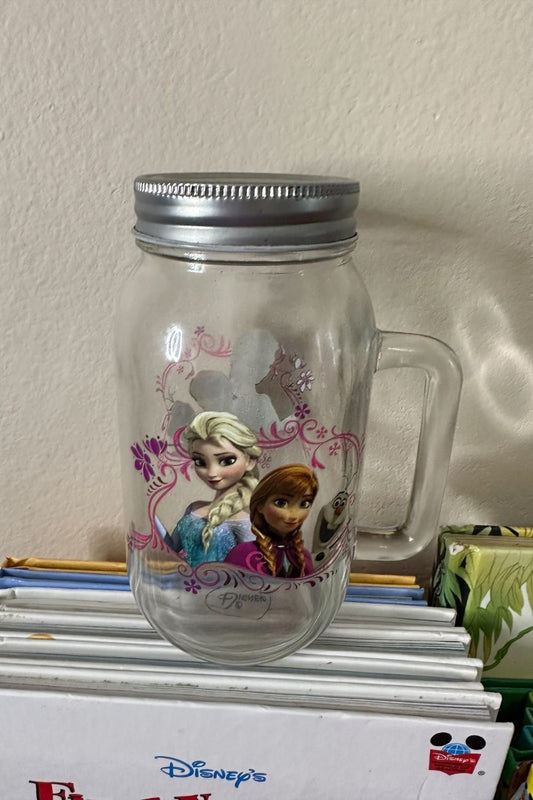 DISNEY FROZEN ELSA & ANNA MASON JAR WITH HANDLE AND LID*