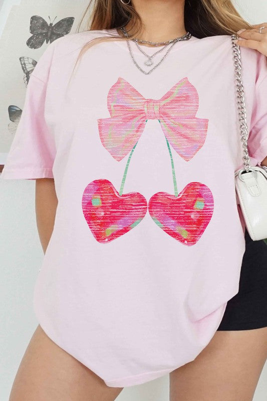CHERRY RIBBON ROMANCE OVERSIZED GRAPHIC TEE