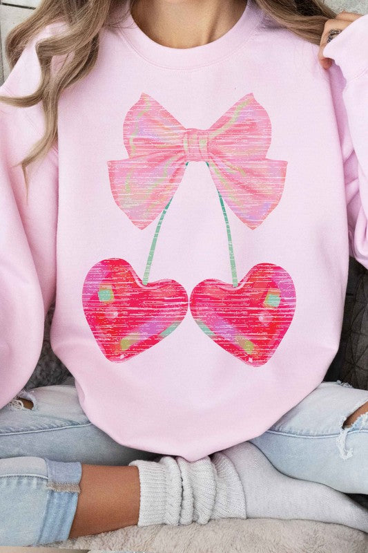 CHERRY RIBBON VALENTINES GRAPHIC SWEATSHIRT