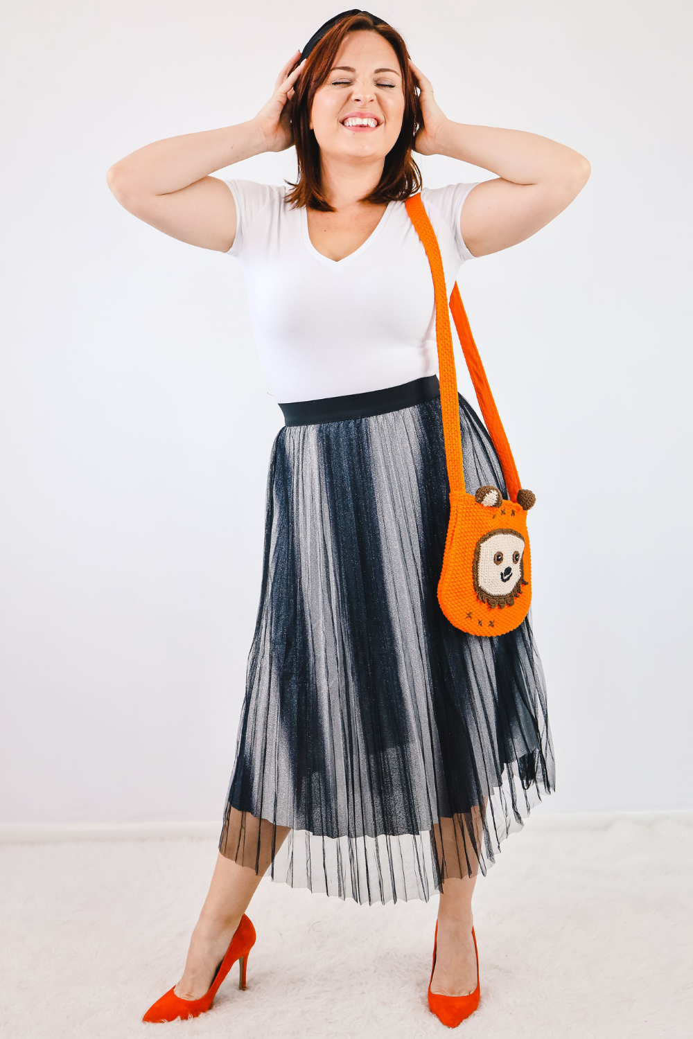 - Pleated tulle midi skirt